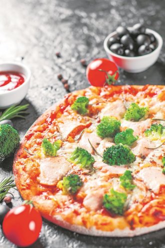 U toploj vodi rastvoriti kvasac sa malo šećera. U većoj posudi pomešati brašno i so, pa dodati kašiku ulja i nadošli kvasac. Zamesiti testo, ostaviti na toplom da se udvostruči, pa ga razvaljati oklagijom i staviti u podmazan pleh. Premazati usitnjenim paradajz pelatom, posoliti, pobiberiti i začiniti origanom, pa odozgo rasporediti komade lososa, brokoli isečen na cvetove i iseckanu mocarelu. Preliti sa još malo maslinovog ulja i peći u rerni zagrejanoj na 240 stepeni 12-15 minuta.
