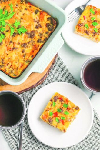 Preko ponovo stavite tri paprike i sloj fila, pa završite sa ostatkom paprika, koje ćete preliti umućenom pavlakom s jajima. Pecite u rerni zagrejanoj na 220 stepeni oko pola sata. Secite na kocke i služite musaku.