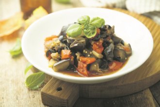 Patlidžan oprati, očistiti, iseći na kocke, pa staviti u cediljku i posoliti. Ostaviti da odstoji desetak minuta, te isprati i ocediti. U većoj šerpi na zagrejanom ulju propržiti iseckan crveni luk, te dodati izgnječeni beli luk, patlidžan, čili papričicu i iseckane paprike. Mešati pet minuta, pa ubaciti usitnjen pelat, iseckan paradajz, so, biber i bosiljak, pa krčkati dok povrće ne omekša i dok ne ispari višak tečnosti. Poslužiti dok je toplo.