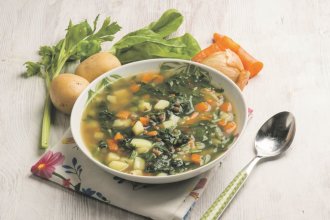 Zelje, kupus i blitvu isecite na manje komade. Iseckajte šargarepu, krompir, crni i beli luk. U šerpi na maslinovom ulju prodinstajte crni i beli luk, dodajte šargarepu i krompir i dinstajte još nekoliko minuta. Dodajte zelje, kupus i blitvu i sipajte vodu tako da prekrije povrće. Posolite i pobiberite po ukusu. Kuvajte na srednjoj vatri dok povrće ne omekša, najduže dvadesetak minuta. Kada je supa gotova, poslužite je sa kriškom prepečenog hleba.