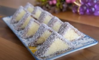 Isecite patišpanj u obliku trougla. Istopite čokoladu sa mlekom, pa uvaljajte ivice trougla u glazuru, a zatim i u kokos. Ređajte trozugao čupavce na tacnu.