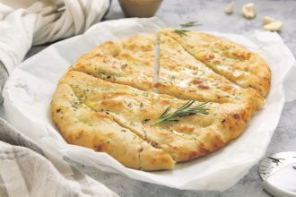 U činiju sipati brašno, dodati šećer, kvasac, so, vodu i maslinovo ulje. Mešati dok se ne dobije glatko testo. Prekriti vlažnom krpom i ostaviti da odstoji na toplom oko 50 minuta. Kad testo naraste, dodati sitno seckan beli luk, origano i ruzmarin. Testo zatim razvaljati, podeliti na šest delova, formirati fokače i prebaciti na pleh. Preliti maslinovim uljem i peći u rerni na 200 stepeni oko 45 minuta.