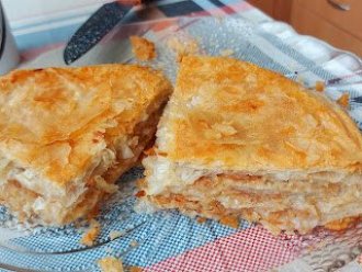 Sledeći red isto dok se sve ne istroši. Odozgo pokriti i ušuškati burek.