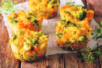 Kada nabubri, ostavite da se ohladi. U većoj posudi izmešajte ohlađenu kinou, jaja, brokoli, sitno iseckan crni i beli luk i izrendan sir.