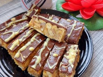 U šerpu staviti šećer, dodati vodu, vanilin šećer, ostaviti da se karamelizuje. Dodati slatku pavlaku i brzo mešati. Ubaciti maslac, pa na kraju kikiriki i seckane orahe.