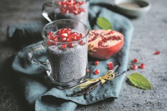 Čija semenke pomešati sa bademovim mlekom, ostaviti da odstoji dva-tri minuta, pa dodati med i još jednom sve dobro sjediniti. Ohladiti u frižideru najmanje tri sata. Rasporediti u manje činije ili čaše, ukrasiti bobicama nara i poslužiti.