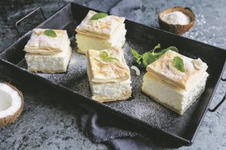 Lisnato testo odmrznuti, rastanjiti oklagijom, pa ispeći u rerni prema uputstvu sa pakovanja. Skuvati sirup od šećera, vode i soka od limuna. Belanca umutiti u čvrst sneg, pa u tankom mlazu postepeno dodavati vreli sirup od šećera i neprekidno mešati, da se dobije čvrst i sjajan šam. Prvu koru staviti na pleh, te odozgo rasporediti smesu od belanaca. Drugu koru iseći na kvadrate jednake veličine, rasporediti preko šama, ohladiti u frižideru i poslužiti.