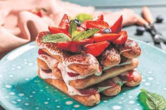 Dno kalupa premazati sa malo fila, odozgo staviti keks natopljen sokom od jagoda, preliti pola fila i isečenih jagoda, još jedan red keksa i sve lepo preliti ostatkom fila. Ostaviti da se stegne u frižideru i pre serviranja ukrasiti jagodama.