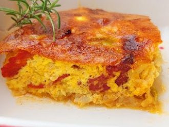 Ubaciti beli luk, ml. biber papriku i kad se malo proprži i omekša ubaciti manji podmazan u pleh. U pavlaku dodati jaja i na kocke kačkavalj. Preliti kupus i protresti da spadne pavlaka na dno.