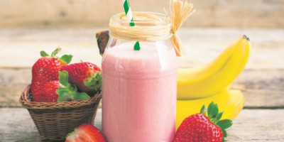 Šejk od jagode - izmiksajte bananu, šoljicu smrznutih jagoda, pola jogurta, 3/4 šoljice soka od pomorandže ili jabuke, dve kriške tofu-sira i dve kašike meda. Mutite dok ne dobijete glatku smesu.