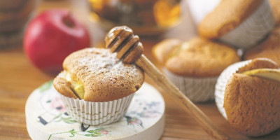 Brašno, šećer, prašak za pecivo i so pomešati u većoj činiji. U drugoj posudi umutiti jaja, mleko, omekšali maslac i med. Dobijenu smesu umešati u činiju sa brašnom, sve dobro sjediniti, pa izliti u podmazane kalupe za mafine. U svaki staviti po tanku krišku jabuke, te peći u rerni na 200 stepeni 15-18 minuta.