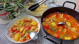 Dinstati meso dodati krompir, suvi začin i paradajz na kocke. Paprikaš ukrčkati da bude gust.