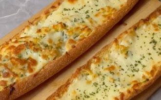Istopite malo putera, pa u njega dodajte beli luk u granulama, kao i peršun. Baget prepolovite, pa ga premažite pomenutom smesom, a zatim prekrijte rendanim kačkavaljem.