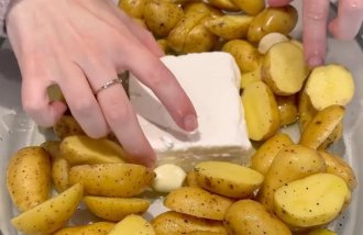 Sve što je potrebno jeste da očistite krompiriće, stavite ih u činiju za pečenje, dodate dva čena belog luka, začinite po želji, prelijete sa malo ulja, pa u sredinu stavite kocku feta sira. Stavite potom da se peče, a kada bude gotovo, izvadite, pomešajte sir sa krompirićima i dodajte narendan kačkavalj, pa ostavite još malo u rerni da se istopi.