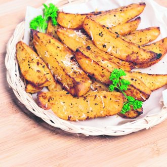 Promešajte. Batat ravnomerno rasporedite u tepsiji. Pecite otprilike 30 minuta. Posle toga pospite ga preostalim parmezanom i poslužite.