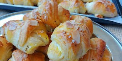 Razviti premazano testo. Iseći na 4 dela a svaku četvrtinu na dva dela. U svaki trougao ubaciti kašičicu sira, pa uviti u kiflice. Ređati u podmazanu tepsiju, pa pokriti da porastu. Premazati žumancetom u koju ste dodali kašiku mleka.