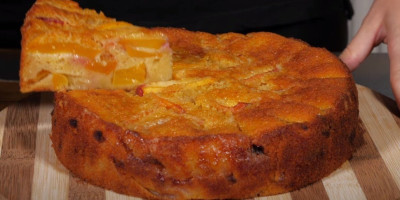 Poređajte breskve iz druge posude, pa pospite šećerom koji ste pomešali sa vanilom i bademom. Pecite kolač u zagrejanoj rerni na 180 stepeni oko sat vremena.