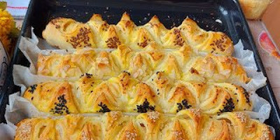 Svaki rolat iseći na koso gore dole kao kiflice. Ostavit rolnice da porastu, pokrivene, pa premazati žumancetom i posutu susamom. Peći na 220 stepeni oko 30 minuta.