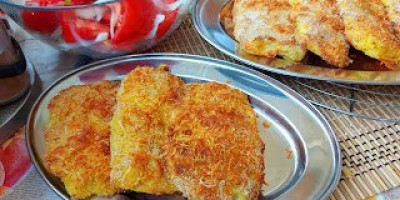 Na foliju staviti brasno i prezle. List tikvice provući kroz brašno, zatim kroz jaja i kačkavalj i na kraju u prezle.
