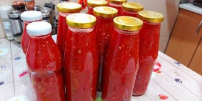 Paradajz dobro oprati i iseći na kriske. U mašini za meso samleti zajedno sa paprikom i listom celera.