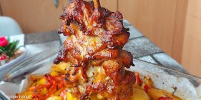 Možete ubaci ispod mesa, krompira, seći kao pomfrit. Preko vrha girosa staviti foliju da ne bi izgorelo.