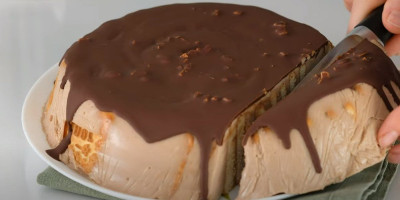 Sipajte i preostali fil, pa poravnajte. Pokrijte providnom folijom i stavite u frižider na 2-3 sata. Izvadite kolač na tacnu, pa prelijte čokoladom koju ste istopili sa uljem. Ostavite u zamrzivaču još 15 minuta da se stegne.
