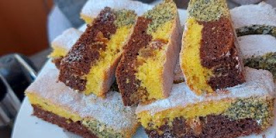 Pleh obložiti pek papirom ili ga premazati uljem. U sredinu po dužini kašikom rasporediti čokoladni deo. Sa obe strane oko čokoladnog dela rasporediti mak, a svetli sipati svetli tj. žuti deo.