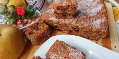 Umutiti jaja sa šećerom dodati mlevene orahe, griz, prašak za pecivo, ulje,rendane jabuke, jogurt i malo cimeta korica limuna.