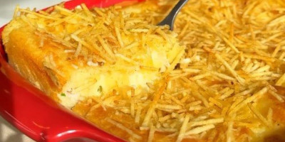 Odvojeno sjediniti sastojke za testo i sastojke za punjenje. U podmazan pleh prvo sipati deo testa, potom punjenje, možete dodati kačkavalj, zatim prespite ostatak testa, a odgore možete staviti parmezan ili čips štapiće.