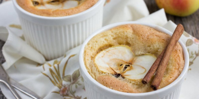 Posude za sufle namazati maslacem, pa posuti šećerom. Ostatak šećera pomešati sa kašom od jabuka, dodati sok od limuna, pa kratko prokuvati na umerenoj temperaturi. Belanca umutiti u čvrst sneg, dodati smesu od jabuka, pa sipati u posude za sufle. Peći u rerni na 200 stepeni oko pet minuta, pa smanjiti na 180 stepeni i peći još 15 minuta.