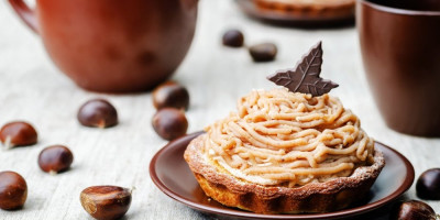 U međuvremenu umutiti kesten-pire sa 100 ml slatke pavlake, dodati otopljenu čokoladu i sve dobro sjediniti. Preostalu pavlaku umutiti u čvrst šlag. Pečene korpice filovati slatkom pavlakom, pa odozgo špricem naneti fil od kestena. Ohladiti i poslužiti.