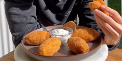 Oblikujte krokete i umuljajte ih u jaja i prezle. Zatim pržite u zagrejanom ulju na 170/180 stepeni.