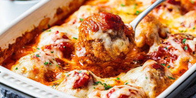 Rernu zagrejati na 180 stepeni. Pomešati pekorino, prezle, peršun, beli i crni luk u prahu, so i biber, pa dodati jaja umućena sa vodom. Zatim ubaciti mlevenu junetinu i svinjetinu, sve dobro sjediniti, pa od dobijene smese formirati ćufte. Poređati na pleh obložen papirom za pečenje, preliti sa sokom od paradajza, začiniti po potrebi (možete da dodate i kašičicu brašna), pa peći u rerni oko 30 minuta. Dodati mocarelu, vratiti pleh u rernu na još 10 minuta, pa ćufte poslužiti sa peršunom i bosiljkom.