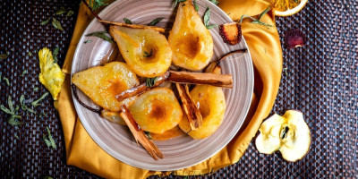 Kruške dobro oprati i prosušiti. Sa donje strane ih malo izdubiti nožem, pa u svaku staviti po kašičicu meda. Kruške potom poređati u podmazanu vatrostalnu činiju, pa ih posuti smeđim šećerom. Sipati vodu, dodati karanfiliće, pa peći u rerni 15 minuta. Smanjiti vatru na 160 stepeni i peći još dva staa, uz često zalivanje krušaka sirupom. Poslužiti dok je toplo sa ili bez sladoleda.