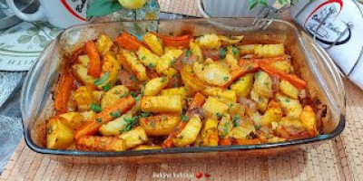 Dodati na prutiće šargarepu. Izjednačen krompir sipati u podmazan pleh i peći na 220 stepeni da lepo porumeni.