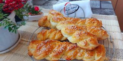 Prstinama pritisnuti kraj jedan pa uviti u pletenicu. Ređati u podmazan pleh i pokriti da odmara 10 minuta. Peći na 220 stepeni 35 minuta da porumeni.