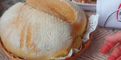 Još malo ga obradite i neka odmori jos 10 minuta, U korpu stavite krpu, najbolje ako ima kockice krpa, staviti malo brašno na nju, pa stavite testo na krpu i pritisnite rukama. Pokrite folijom i krpom.
