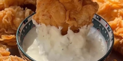 Pomešajte brašno, papriku, začine, dva jaja i vodu. Piletinu isecite na trake, umuljajte u smesu, pa pržite u dubokom ulju.