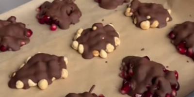 Na pek papir sipajte grupisan nar (ili orašaste plodove), a potom ga prelijte topljenom čokoladom. Ostavite u frižider da se stegne, pa stavite u staklenu činijicu i koristite kada poželite nešto slatko.