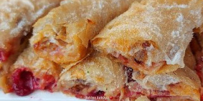 Uviti u rolnicu i ređati u podmazan pleh. Iseći na manje rolate. Premazati uljem i peći na 200 stepeni 40 minuta.