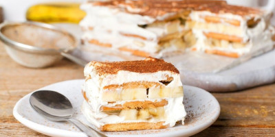 U kalup poređajte čajni keks i premažite mlekom, a onda poređajte i bananu. Premažite fil od čokolade i kikiriki putera, pa poređajte piškote. Opet ih premažite mlekom, poređajte banane. Na kraju premažite umućeni šlag.