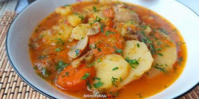 Dodati malo aleve paprike, lovorov list, biber origano i suvi začin . Sipati vode da uva 50 minuta da voda provri. Ako ima tečnosti dosta, dodati kašiku umućenog brašna.