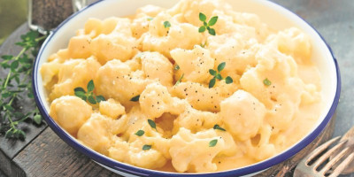 Karfiol očistiti i iseći na cvetove, pa ga kuvati u slanoj ključaloj vodi oko pet minuta. Ocediti i staviti u vatrostalnu činiju. U šerpi na umerenoj vatri otopiti maslac, dodati brašno i mešati minut, da se dobije smesa bez grudvica. Potom sipati mleko, mešati dok sos ne počne da se zgušnjava, te skloniti sa vatre i dodati rendanu gaudu. Začiniti po ukusu, preliti karfiol i peći u rerni na 200 stepeni 20 minuta.