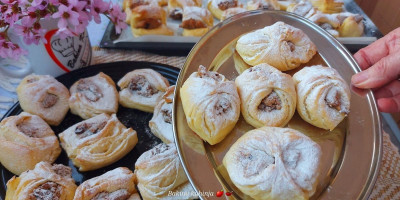 U svaki kvadrat staviti po kašičicu nadeva i preklopiti i dobro pritisnuti. Ostaviti da odmore 15 minuta pa peći na 220 stepeni oko 30 minuta.
