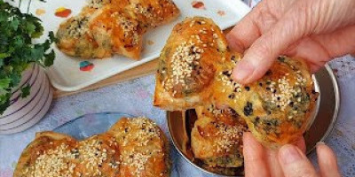 Ređati u pleh, premazati žumancetom imalo preliti uljem i susamom. Peći na 200 steopeni 40 minuta.