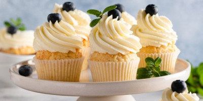 Pomešati brašno, šećer, prašak za pecivo, sodu bikarbonu i so. U drugoj posudi pomešati bademovo mleko, smeđi šećer, ulje i ekstrakt vanile. Dodati u činiju sa brašnom i sve dobro sjediniti. Izliti u podmazane kalupe za mafine i peći u rerni na 180 stepeni 20-22 minuta. U međuvremenu mikserom umutiti margarin sa šećerom, mlekom i vanilom. Filovati ohlađene mafine i poslužiti.