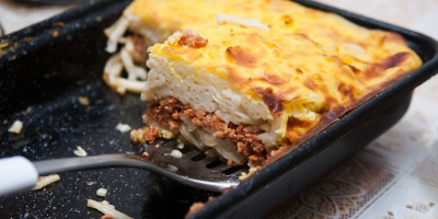 Skuvajte špagete, pa ih procedite i isperite hladnom vodom. Izdinstajte mleveno meso na ulju. Zagrejte rernu na 250 stepeni, a dublji pleh podmažite sa pola kašike putera. U činiji pomešajte jaja, mleko, izdinstano mleveno meso, so, biber i tri kašike parmezana. Dodajte špagete, pa dobro promešajte i sipajte u pleh. Preko stavite preostali puter i pospite origano i jednu kašiku parmezana. Ostavite da se peče oko 25 minuta dok ne dobije zlatnu boju. Služite toplo uz salatu.
