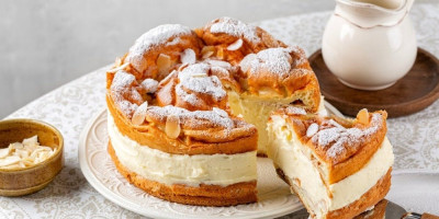 Vodu, maslac, so i šećer zagrejati na laganoj vatri. Kad se maslac otopi, skloniti s ringle i umešati brašno. Vratiti na vatru i mešati dok se ne dobije glatka smesa. Dodavati jedno po jedno jaje i sve dobro umesiti. Podeliti na dva dela i ispeći dve kore u rerni na 200 stepeni oko 25 minuta.