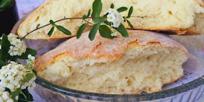 Peći pogaču na 200 stepeni da lepo porumeni oko 40 - 45 minuta. Uviti u krpe i prohlđjenu rukama pokidati.