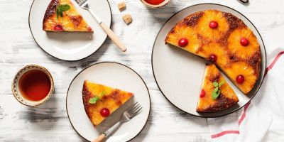 Kolutove ananasa ocediti od soka, pa sok sipati u šerpu i kuvati dok se količina ne prepolovi. Belanca umutiti u šam, dodati polovinu šećera, pa miksati još nekoliko minuta. U drugoj činiji žumanca izmiksati sa preostalim šećerom, vanilom i redukovanim sokom od ananasa, dodati brašno pomešano sa praškom za pecivo, sjediniti, pa umešati i šam od belanaca. Dobijenu smesu izliti u pleh obložen papirom za pečenje, odozgo blago utisnuti kolutove ananasa, pa peći u rerni na 170 stepeni oko sat vremena.